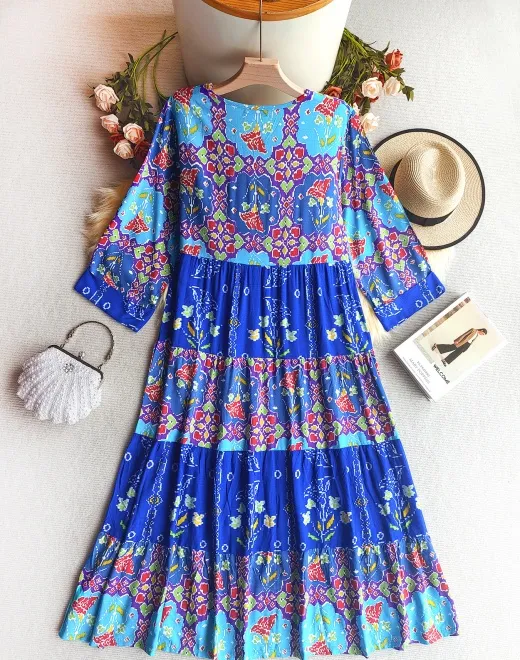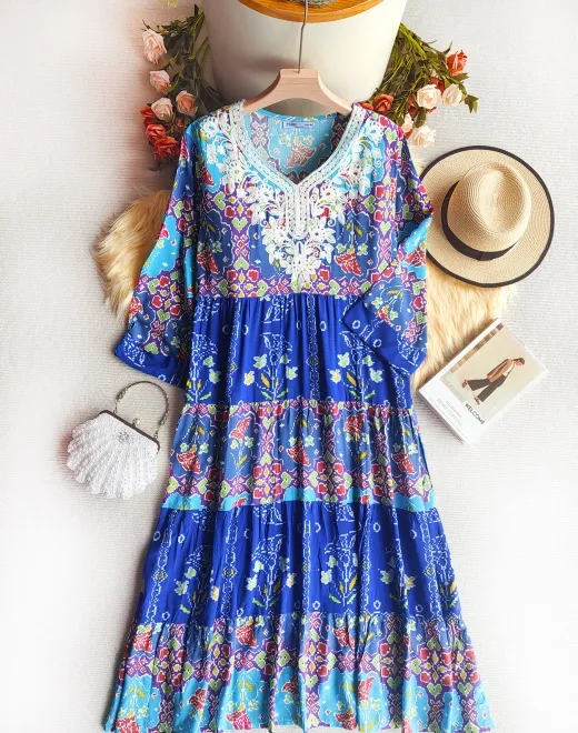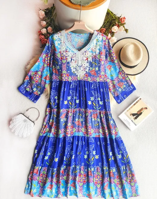 Design Features | 7/10 regular sleeves, embroidered floral patterns, pleated full skirt |